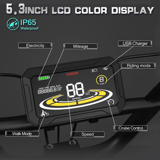 FUCARE Gemini X 750W Electric Bike; 48V 15A LG Dual Lithium Batteries; 20 Inch 4.0" Fat Tire; 28MPH Max Speed; 5.3" LCD Display